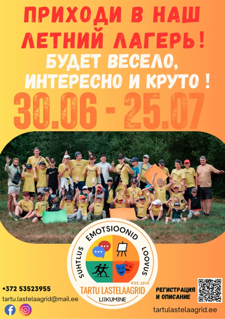 За счет финансовой поддержки и опыта мы имеем возможность предоставить детям высокий уровень содержания и качества лагеря, при этом сделать самую доступную цену в Эстонии.