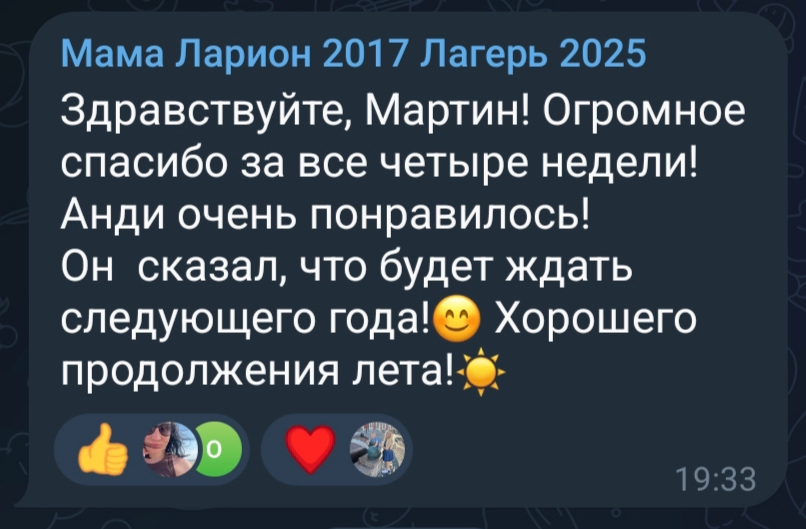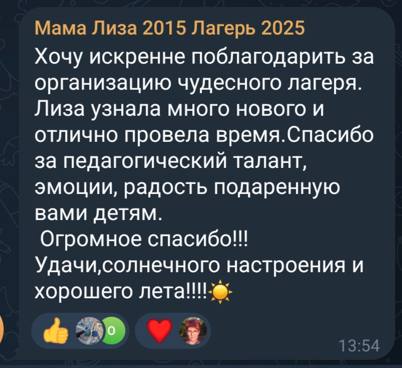 Каждый день родителям будет отправлятся текстовый и видеоотчёт в общий Telegram-чат.